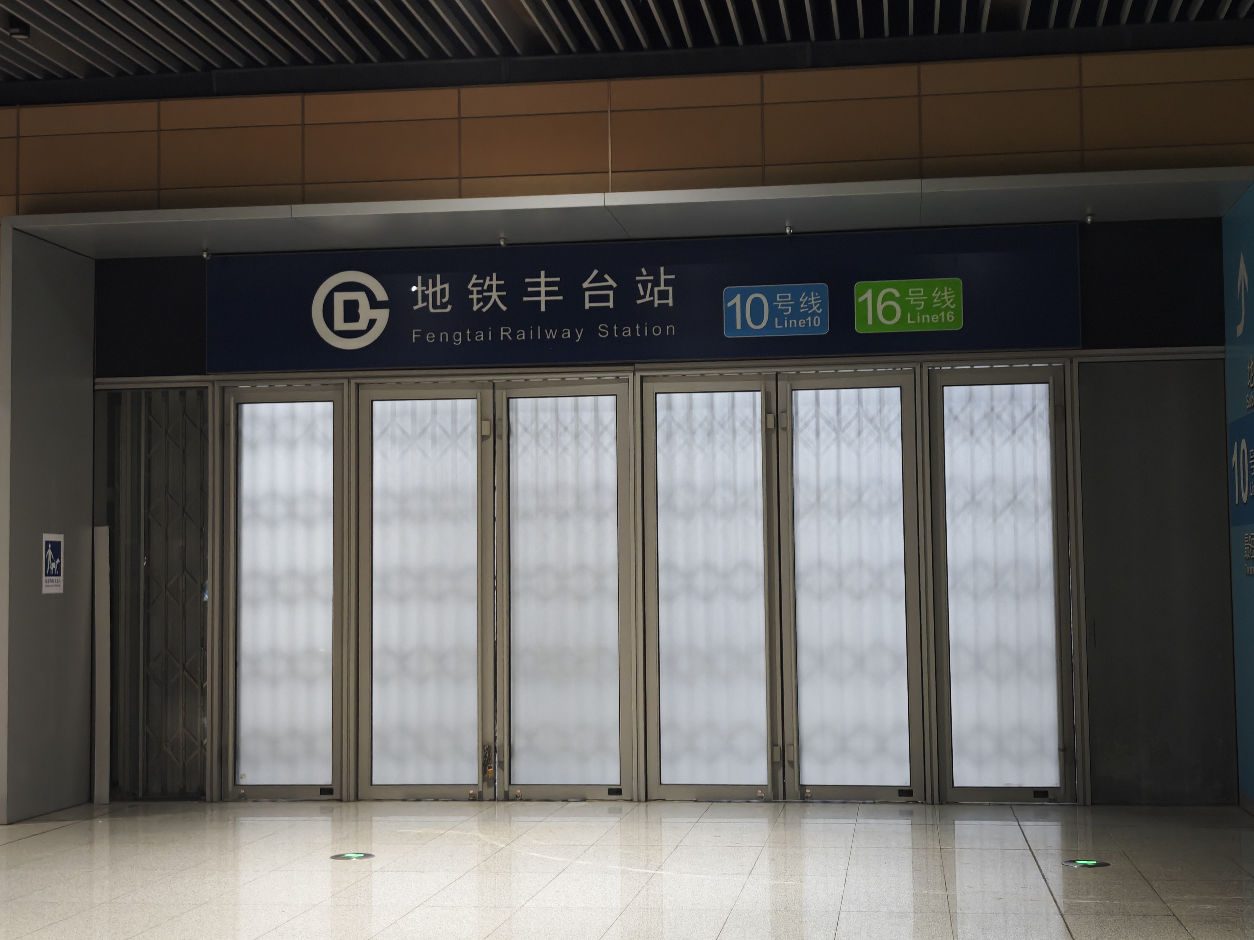 记者近日实地走访时看到,地铁16号线丰台站配有A1、A2口,两个地铁口共用一个外挂厅(指外挂在车站主体结构外的购票、刷卡的站厅),外挂厅的灯光都已开启,还配备了闸机、扶梯、售票机、售票窗口、广告屏等设施,这些设施均已建好,基本都通了电,相关指示标识也比较完善,看起来一切正常。但外挂厅处于封闭状态,没有开放使用,地铁进站口的电子显示屏标注着醒目的叉号,旁边的示意图显示这里“暂缓开通”。